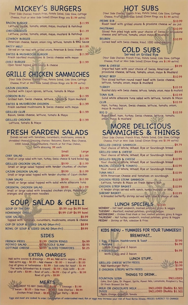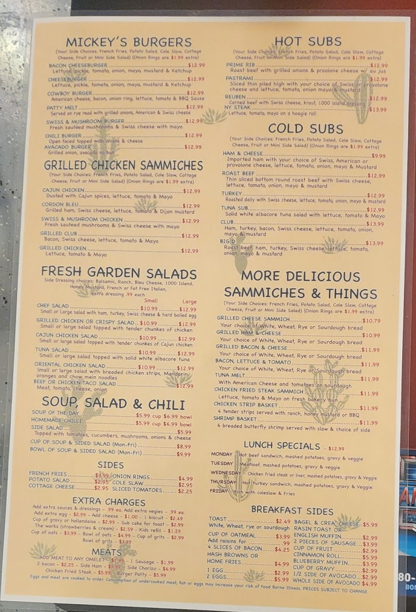 Mickey D's Cafe Menu